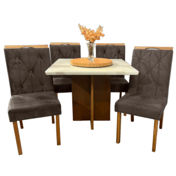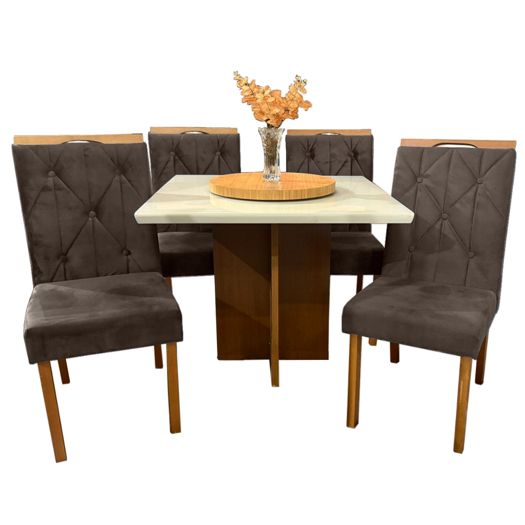 Mesa Salinas 120 Cinamomo/Off White com 4 Cadeiras Yasmim Veludo Marrom – CEL MÓVEIS + KM DECOR