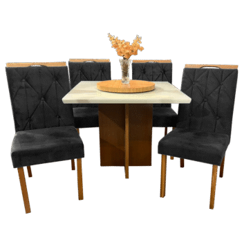 Mesa Salinas 120 Cinamomo/Off White com 4 Cadeiras Yasmim Veludo Preto – CEL MÓVEIS + KM DECOR