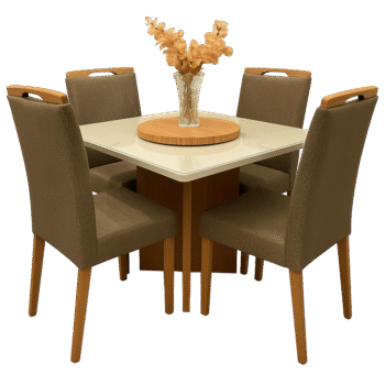 Mesa Salinas 90 Cinamomo/Off White com 4 Cadeiras Priscila Veludo Marrom 1011 – CEL MÓVEIS + CARVALHO DECOR