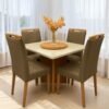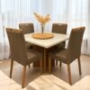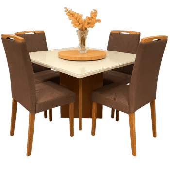 Mesa Salinas 90 Cinamomo/Off White com 4 Cadeiras Priscila Veludo Marrom 1014 – CEL MÓVEIS + CARVALHO DECOR