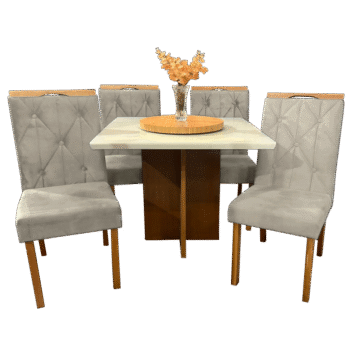 Mesa Salinas 90 Cinamomo/Off White com 4 Cadeiras Yasmim Veludo Bege – CEL MÓVEIS + KM DECOR