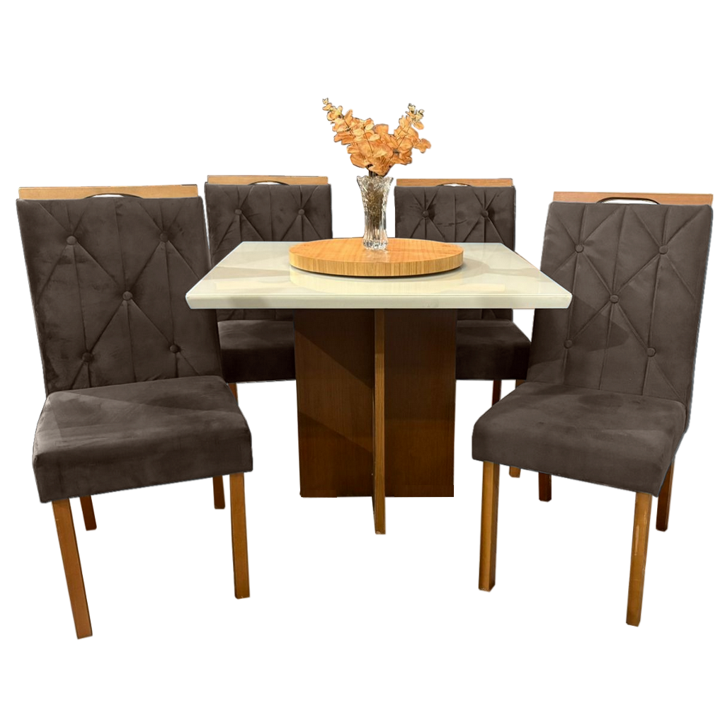 Mesa Salinas 90 Cinamomo/Off White com 4 Cadeiras Yasmim Veludo Marrom – CEL MÓVEIS + KM DECOR
