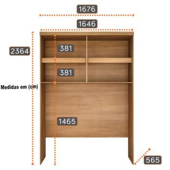 3{%%}Descrição{%%}Modulado Aéreo Rizon Cumaru/Fendi Fosco 4 Portas 2 Prateleiras 100% MDF Larg. 1.67m – Novo Horizonte