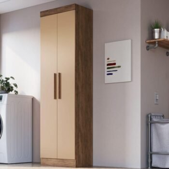– Duas portas com dobradiças metálicas