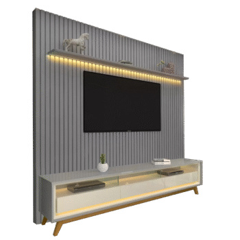 Painel até 85″ Nobre 230 Cinza + Rack Requinte 212 Cinza/Off White – GELIUS