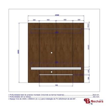 3{%%}Descrição{%%}Painel Leme Larg. 1.50m Impressão Ripada 3D Ripado/Off White para TV até 60″ – Bechara