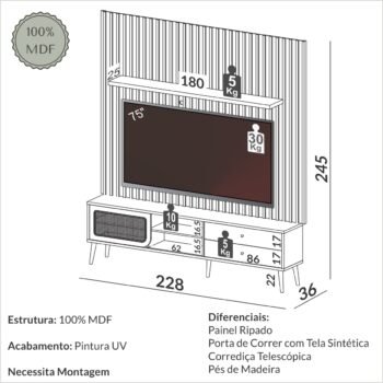 Painel + Rack TB346F Freijó – DALLA COSTA