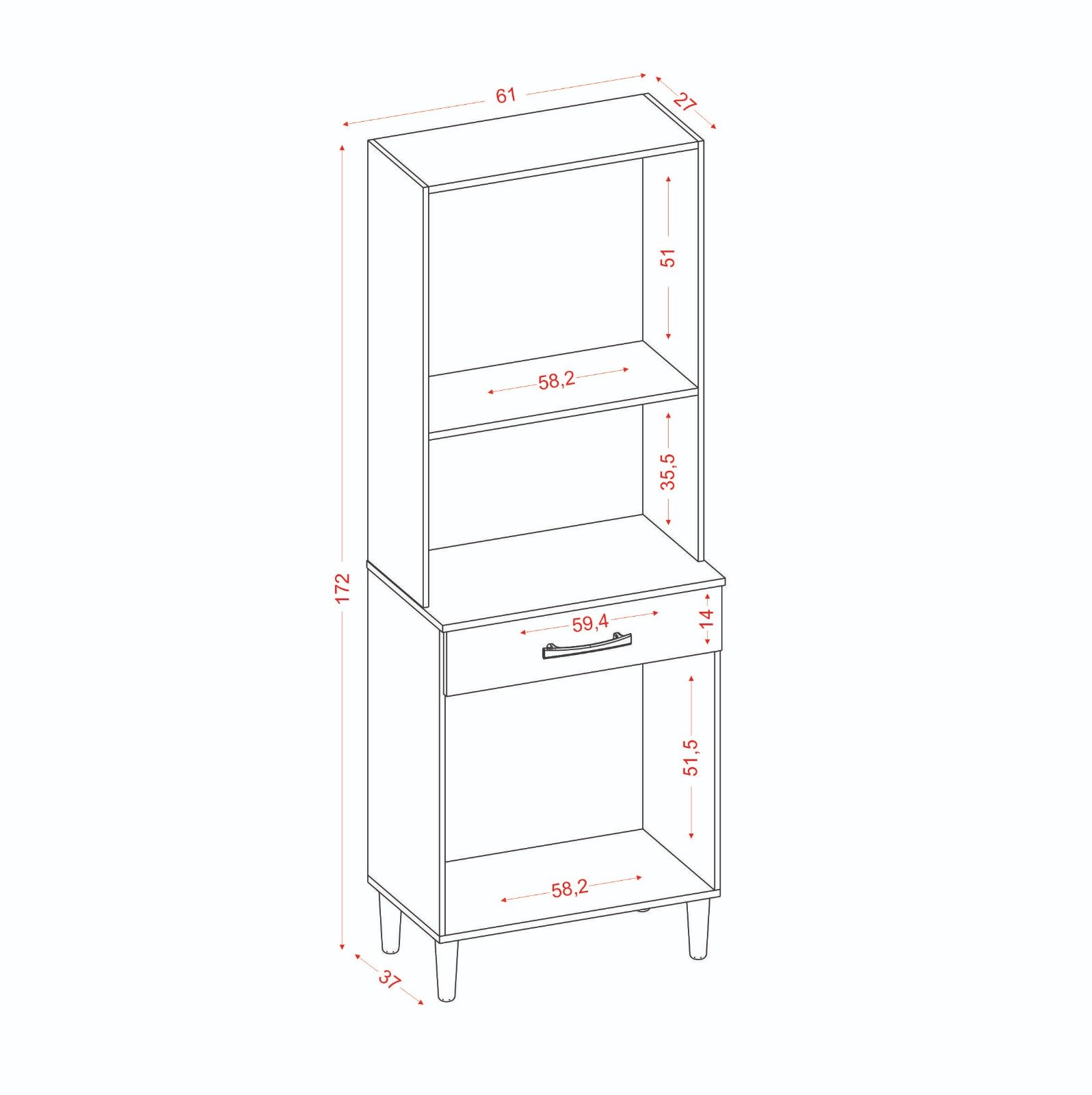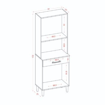 – Uma gaveta com corrediças metálicas