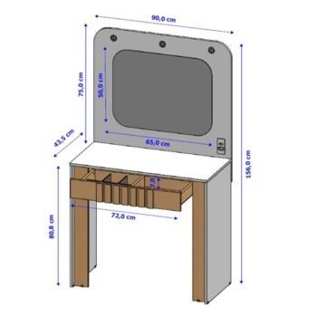 3{%%}Descrição{%%}Penteadeira Camarim Rouge Branco Larg. 0.90m – Bechara