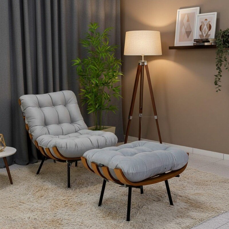 – Assento e encosto: Almofadas 100% fibra de silicone, garantindo total conforto e maciez.