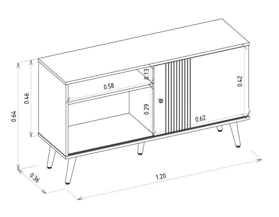 – Uma porta de correr MDF 15 mm com detalhes em frisos