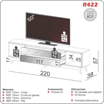 Rack até 60″ Anita R422 Off White/Freijó – DALLA COSTA