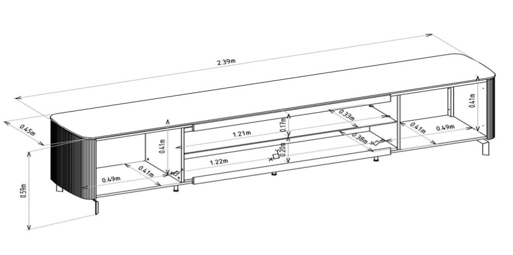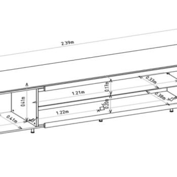 – Espaço para TV: 239 cm x 45 cm (LxP)