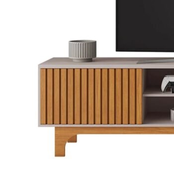 3{%%}Descrição{%%}Rack Triunfo Larg. 2.00m Cinamomo/Off + Painel Riso Larg. 2.07m Cinamomo Ripado para TV até 75″ – JCM