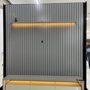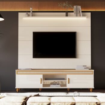 3{%%}Descrição{%%}Rack Triunfo Larg. 2.00m Cinamomo/Off + Painel Riso Larg. 2.07m Cinamomo Ripado para TV até 75″ – JCM