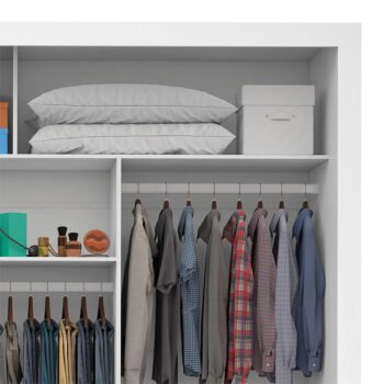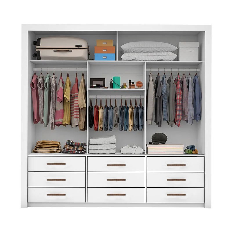 3{%%}Descrição{%%}Roupeiro Anjos Branco 3 Portas 9 Gavetas C/ 1 Espelho Larg. 1.91m- Carioca Móveis