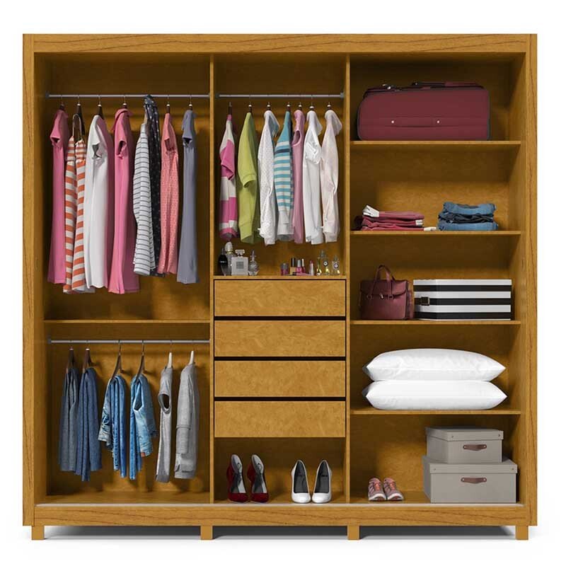 3{%%}Descrição{%%}Roupeiro Casal Royale Naturale 3 Portas Ripado C/ 1 Espelho Larg. 2.28m – Gelius