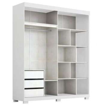 3{%%}Descrição{%%}Roupeiro Heloisa Nature/Off 2 Portas C/ 1 Espelho e Pés 100% MDF Larg. 1.80m – ACP