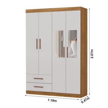 3{%%}Descrição{%%}Roupeiro Solteiro Hercules Cinamomo/Off 04 Portas 02 Gavetas C/Espelho e Pés Larg. 1.18m – Carioca
