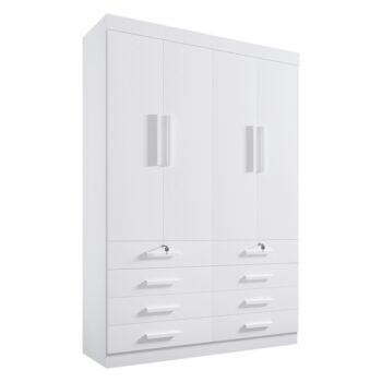 3{%%}Descrição#Como Montar{%%}Roupeiro Solteiro Mônaco Branco 4 Portas 8 Gavetas Larg. 1.60m – D Doro
