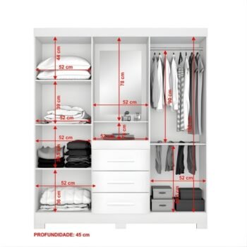 3{%%}Descrição{%%}Roupeiro Solteiro NT 5015 Larg. 1.61m Branco/Rosa 4 portas 3 Gavetas Flex C/Pés – Notável