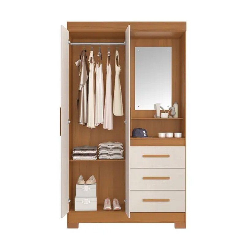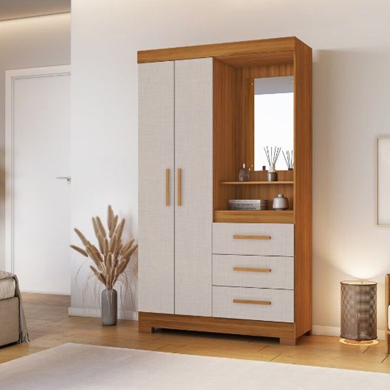 3{%%}Descrição{%%}Roupeiro Solteiro NT 6020 Larg. 1.08m Freijo/Off 2 portas 3 Gavetas Flex C/Pés – Notável