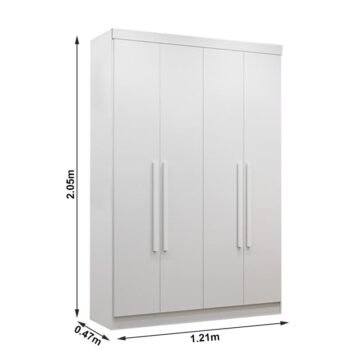 3{%%}Descrição{%%}Roupeiro Solteiro Recife 4 Portas 2 Gavetas Larg. 1.21m Branco Sallêto