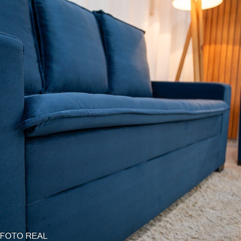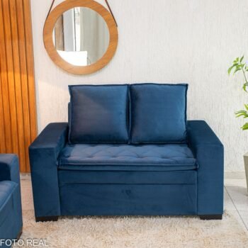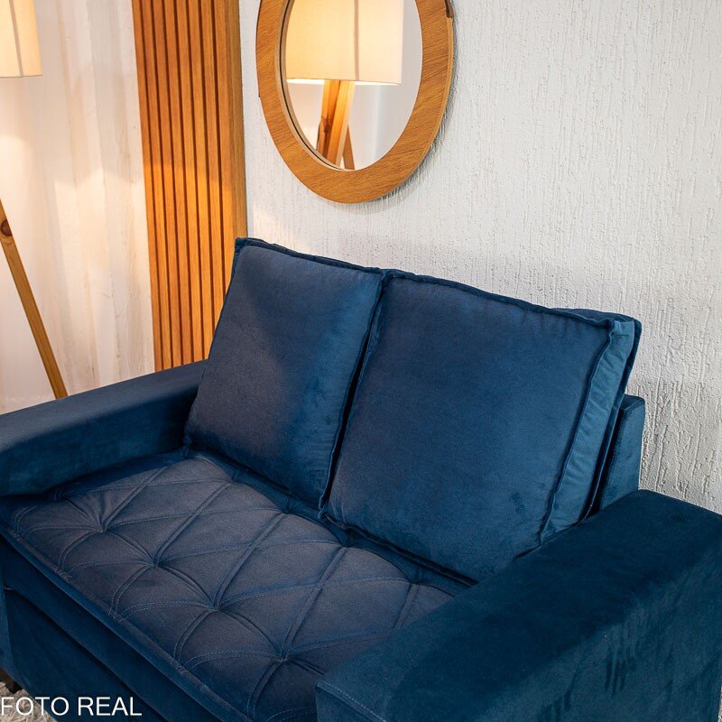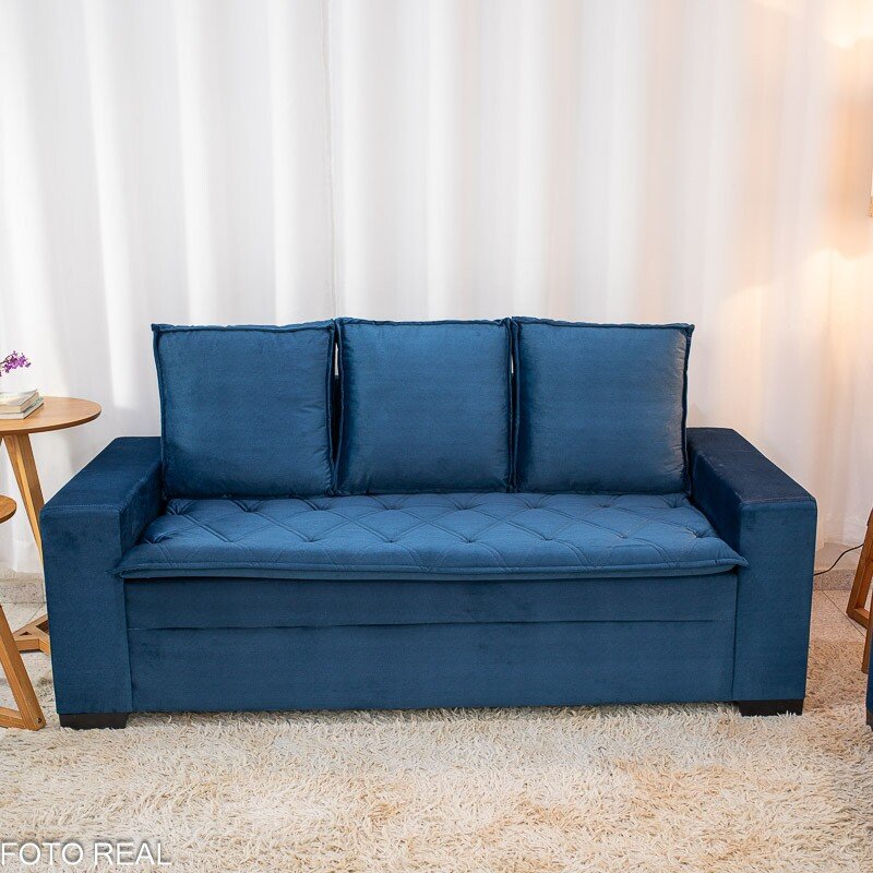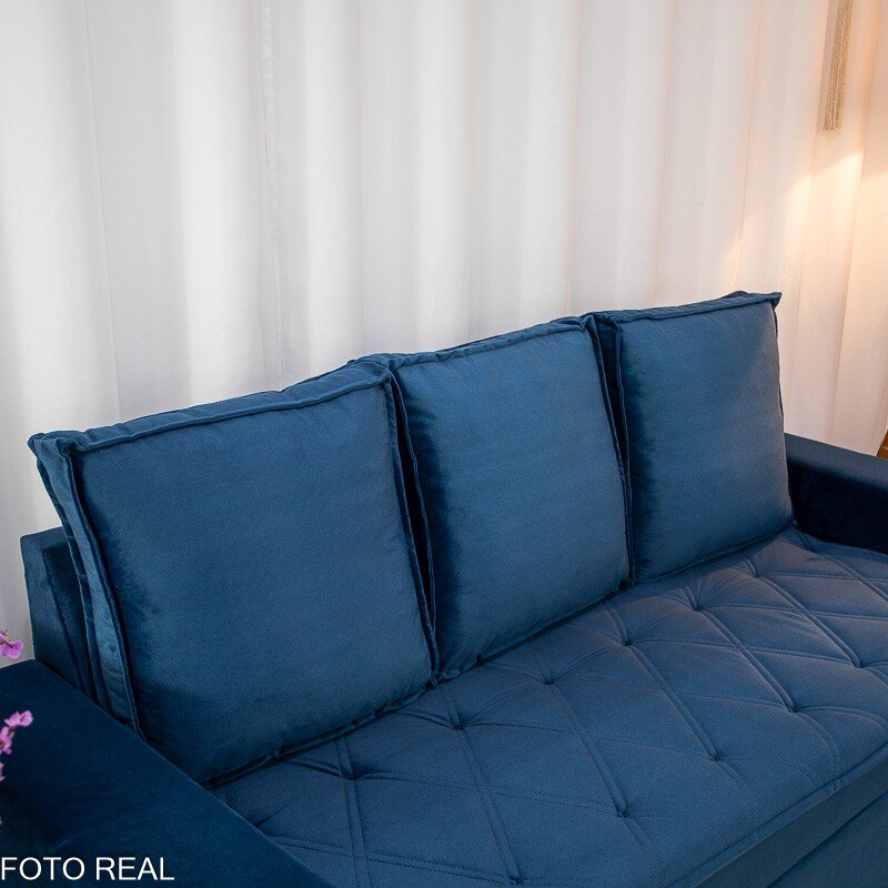 3{%%}Descrição{%%}Sofá 3 e 2 lugares França com Puff Veludo Azul A16