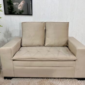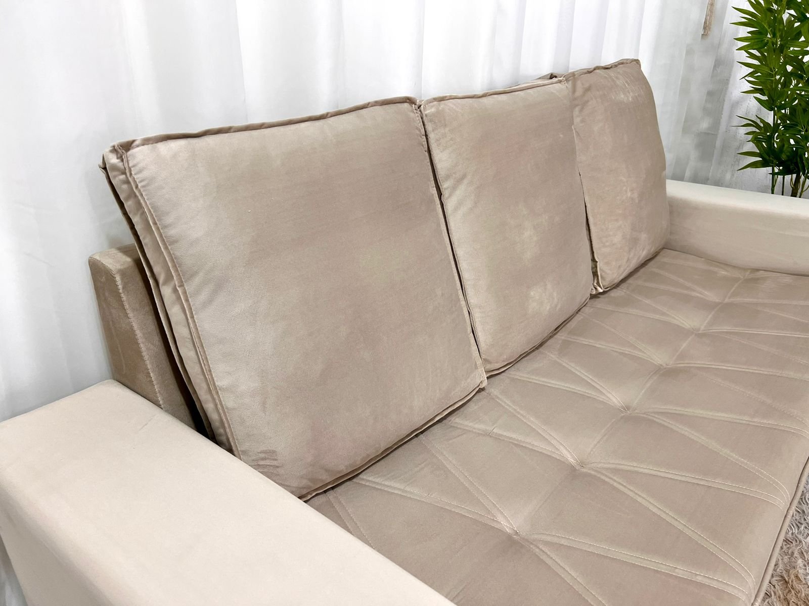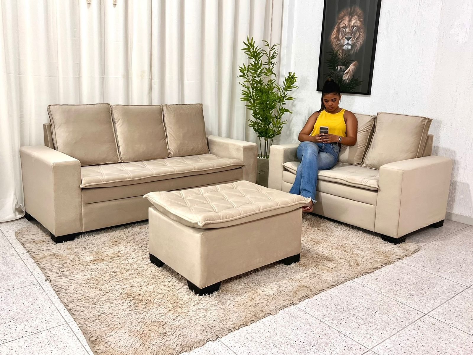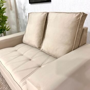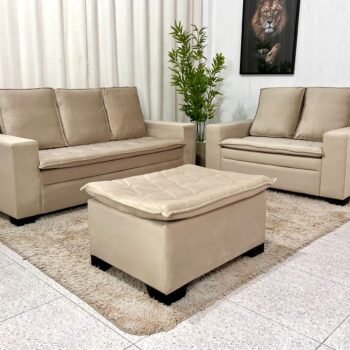 3{%%}Descrição{%%}Sofá 3 e 2 lugares França com Puff Veludo Bege A32 Larg. 1.86m