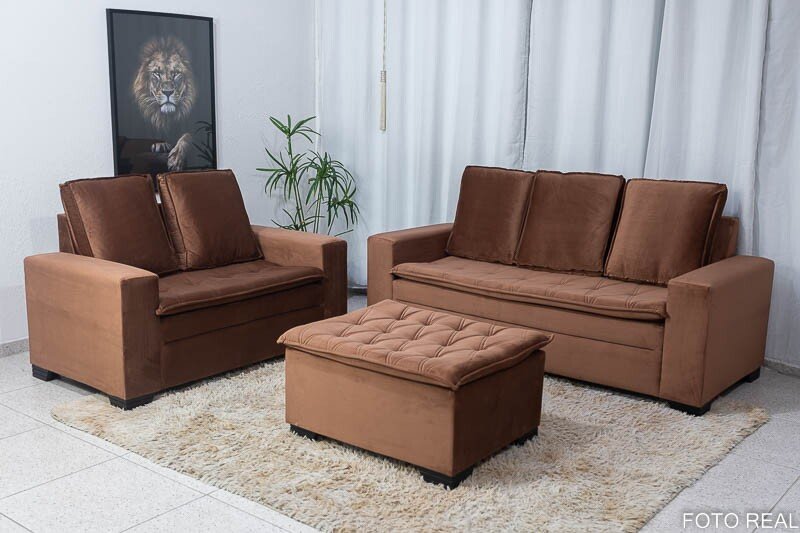 3{%%}Descrição{%%}Sofá 3 e 2 lugares França com Puff Veludo Cobre Larg. 1.86m