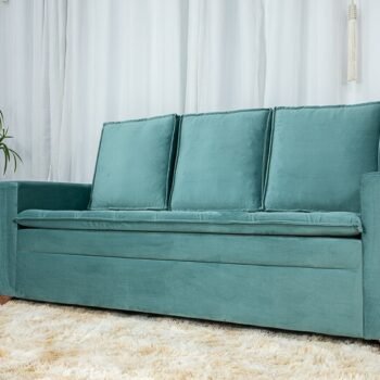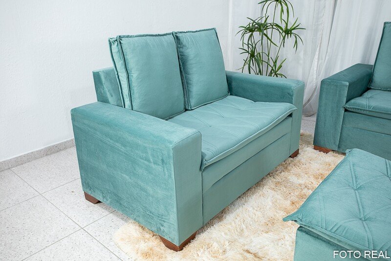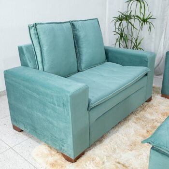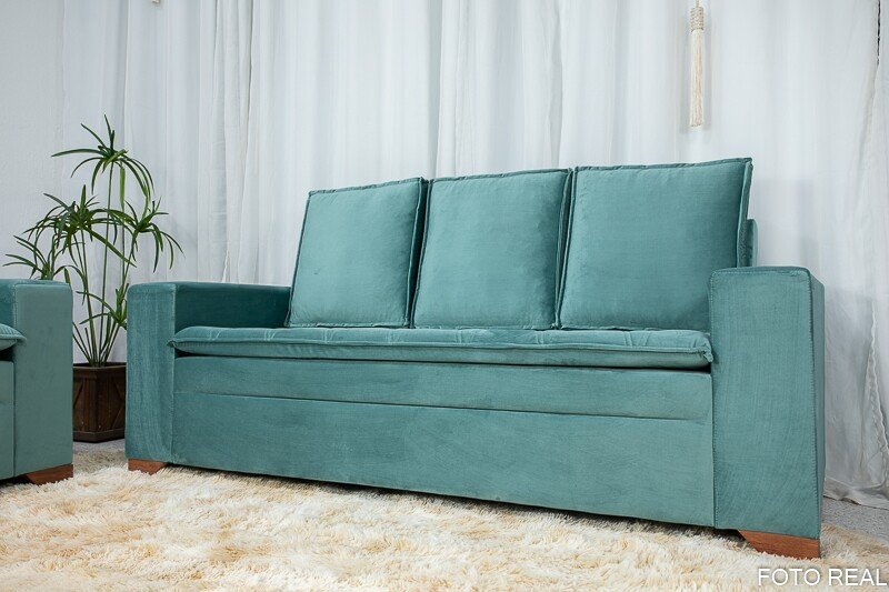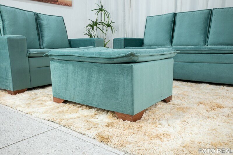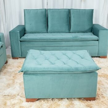 3{%%}Descrição{%%}Sofá 3 e 2 lugares França com Puff Veludo Verde A40 Larg. 1.86m
