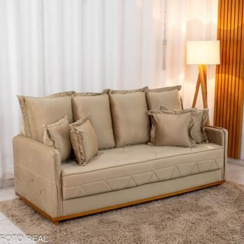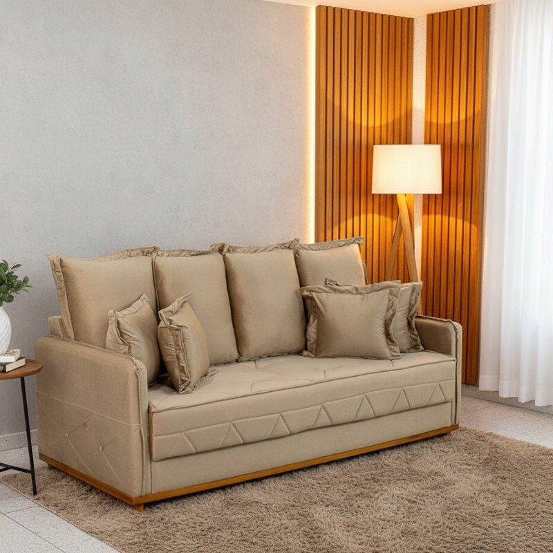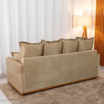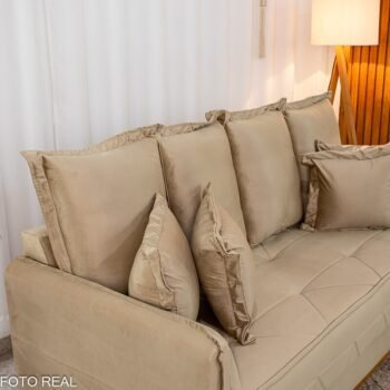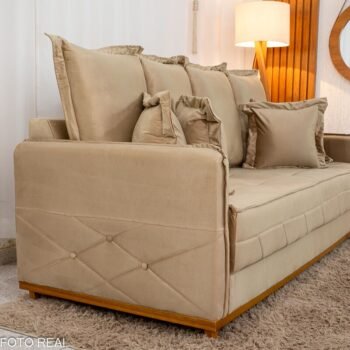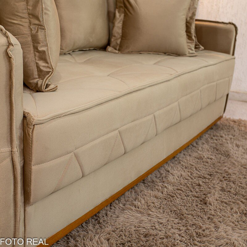 Sofá 3 Lug. Vican Larg. 2.00m Veludo Bege 5002 – Molas Bonnel