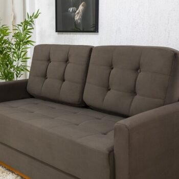 3{%%}Descrição{%%}Sofá 3 lugares Living Áustria Veludo Marrom A17 Larg. 1.70m