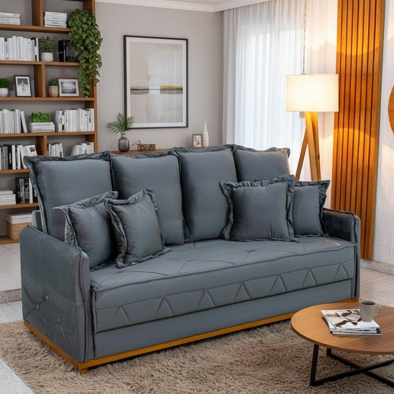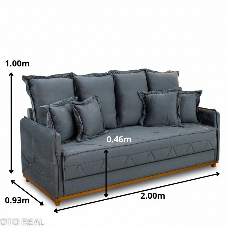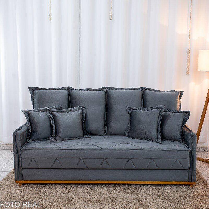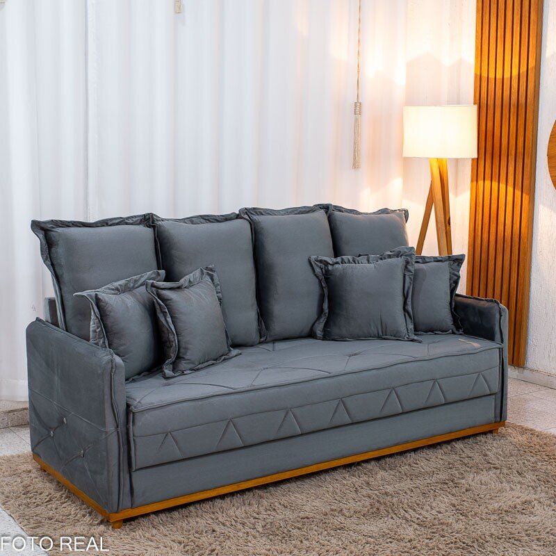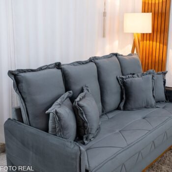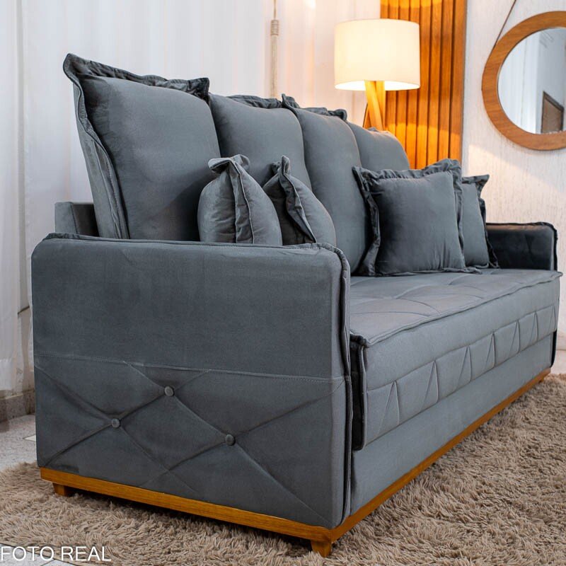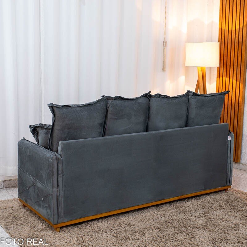 Sofá 3 lugares Vican Larg. 2.00m Veludo Cinza 5001 – Molas Bonnel