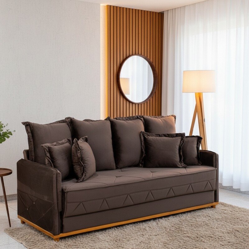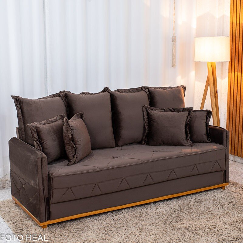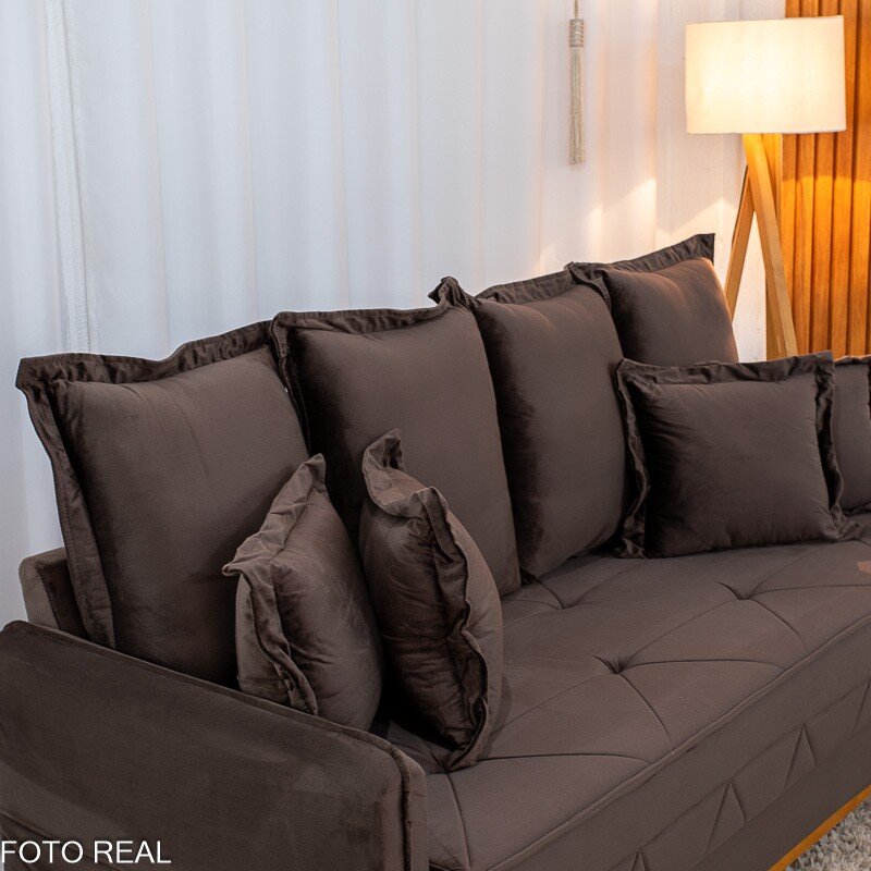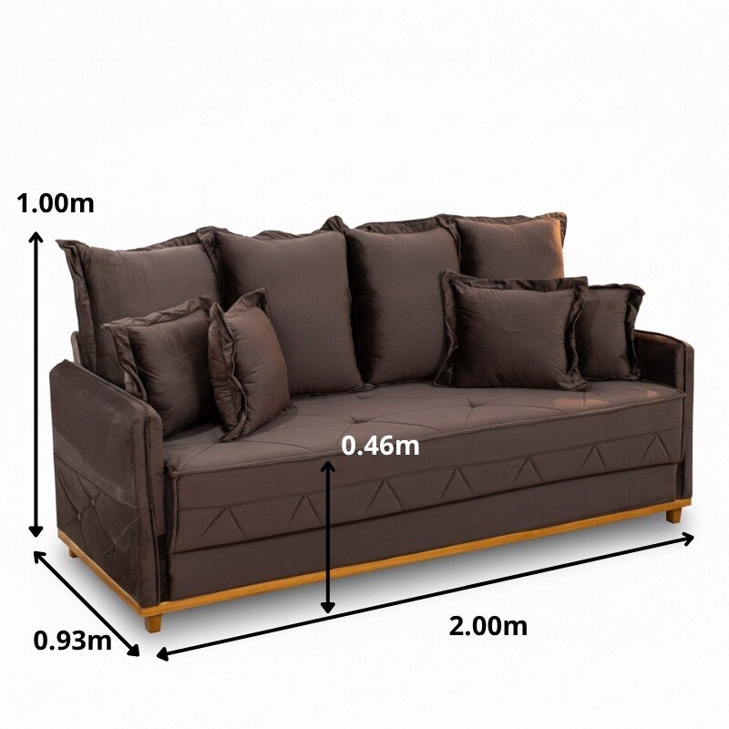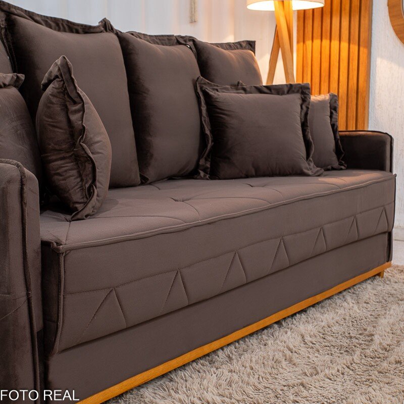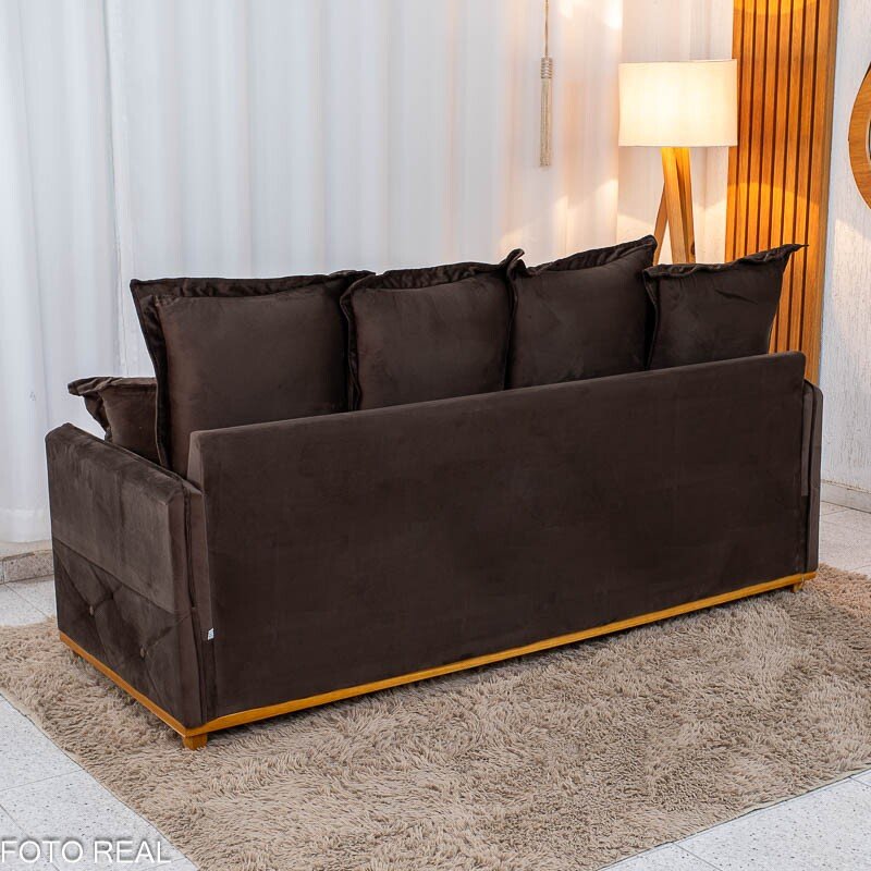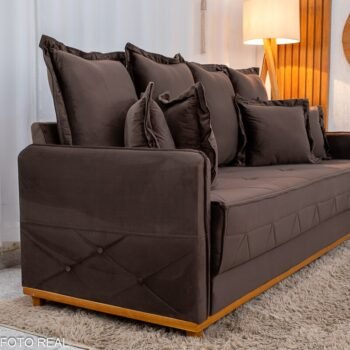 3{%%}Descrição{%%}Sofá 3 lugares Vican Larg. 2.00m Veludo Marrom 5004 – Molas Bonnel
