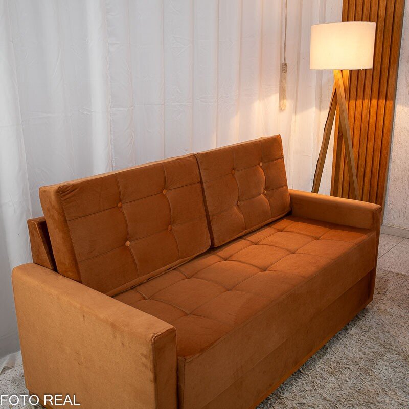 3{%%}Descrição{%%}Sofá Áustria 3 Lugares + Poltrona Áustria Veludo Terracota A62