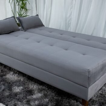 3{%%}Descrição{%%}Sofá Cama Arpoador Veludo Cinza Larg. 1.85m