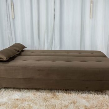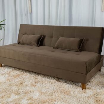 3{%%}Descrição{%%}Sofá Cama Arpoador Veludo Marrom Larg. 1.85m