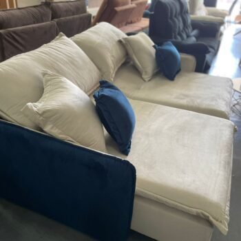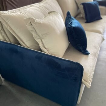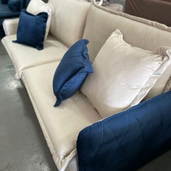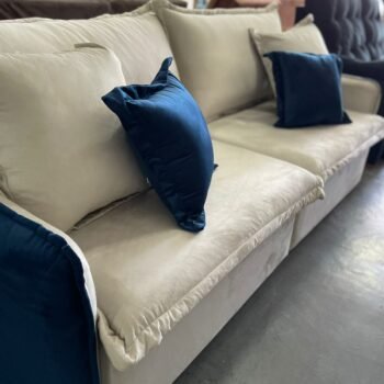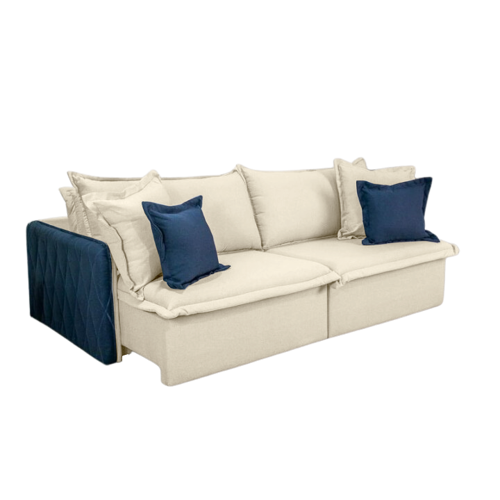 Sofá Cama Retrátil Blog 2,20 m Veludo Marfim/Azul – INNOVE ESTOFADOS