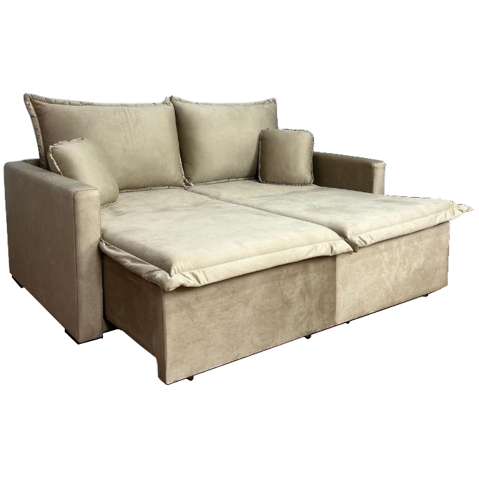 Sofá Cama Retrátil Positano 1,80 m Veludo Bege 3040/04 – INNOVE ESTOFADOS