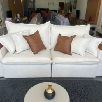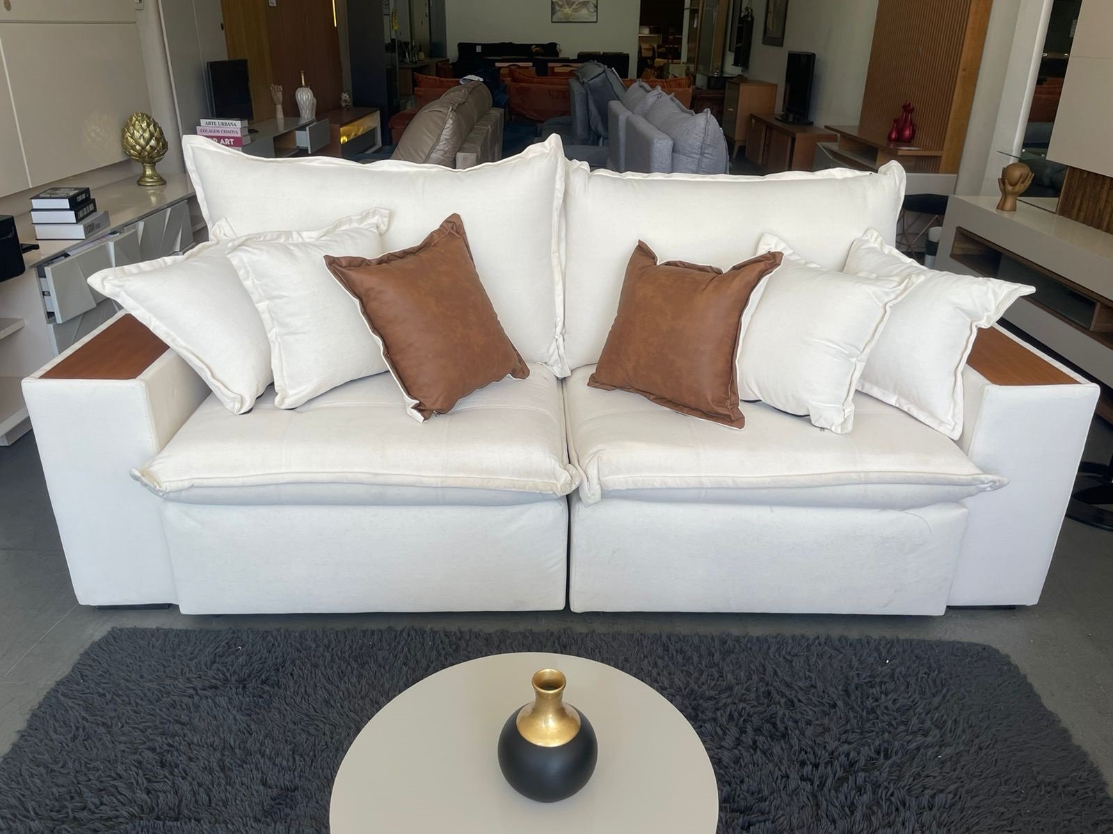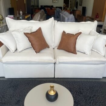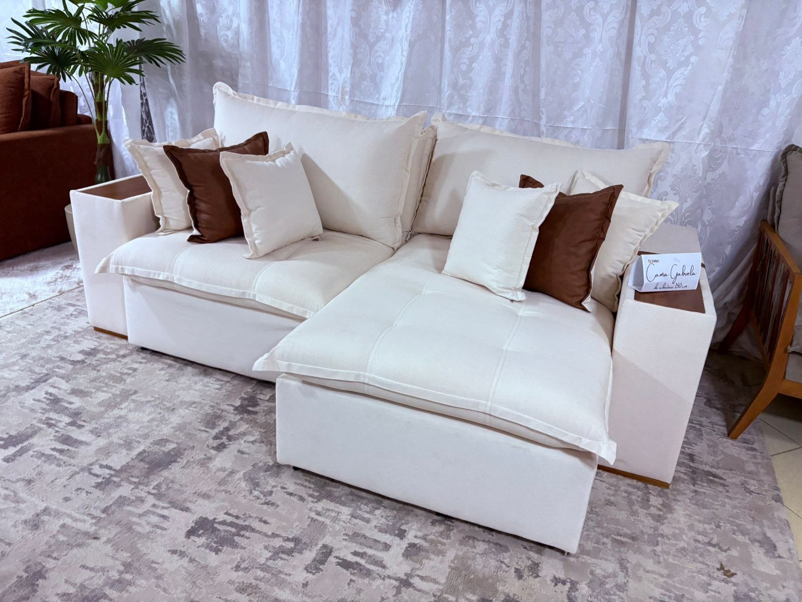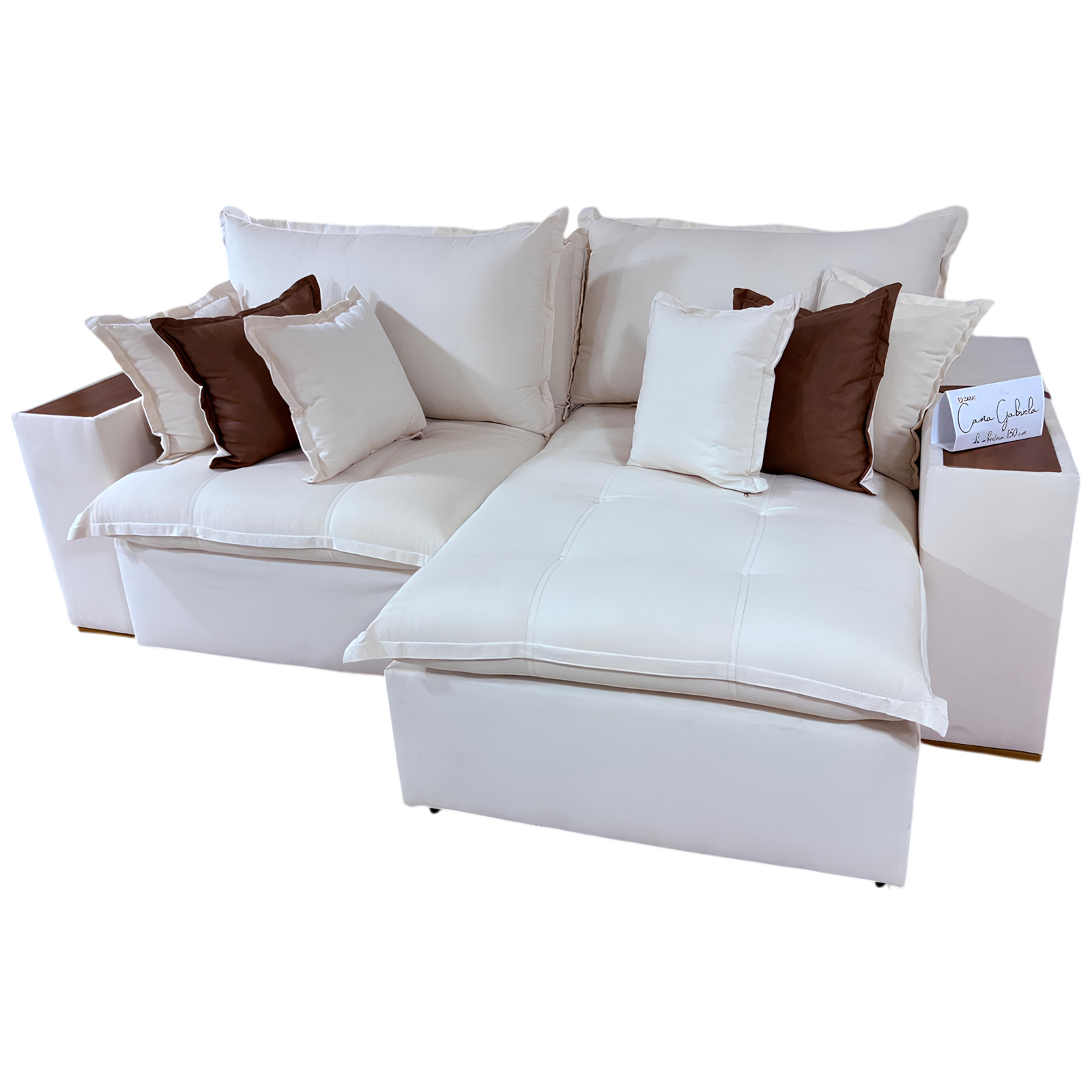 Sofá Cama Thebas/Gabriela 2,90 m Linho Cru 304/Courino Dalas – ZARAT ESTOFADOS