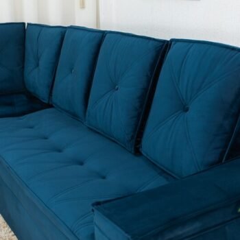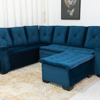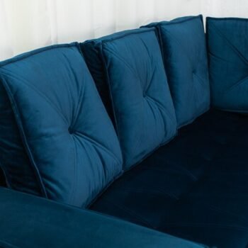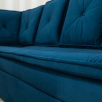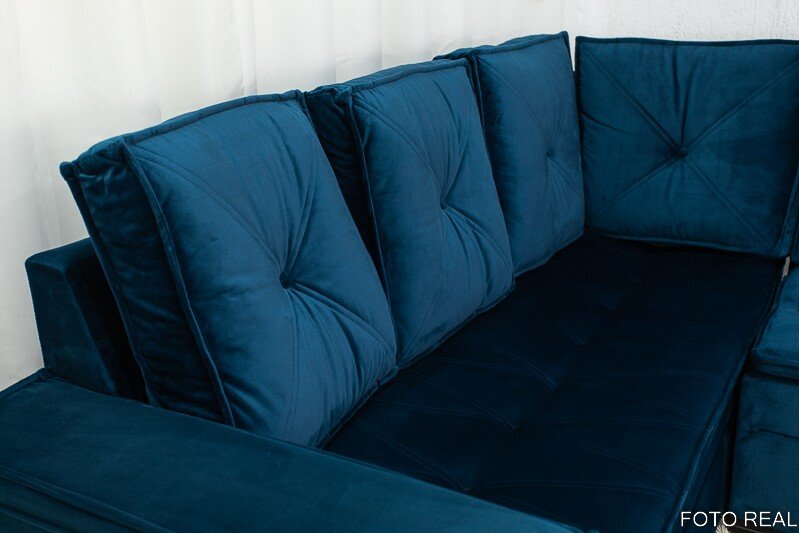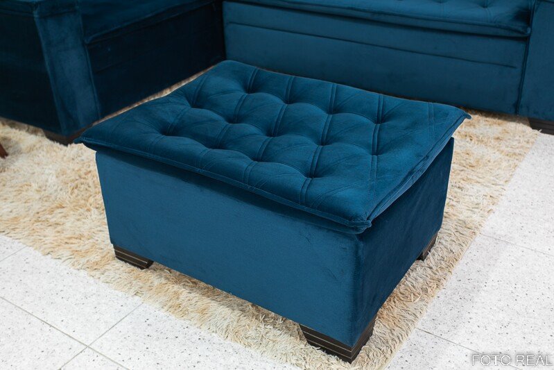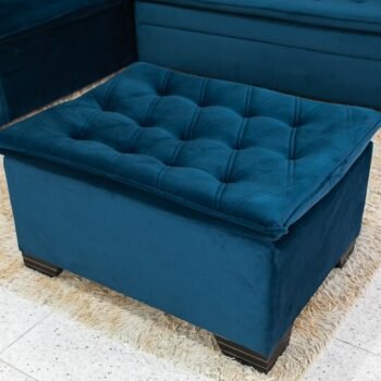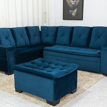 3{%%}Descrição{%%}Sofá Canto 5 lugares com Puff Alemanha Veludo Azul A16