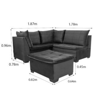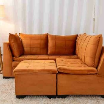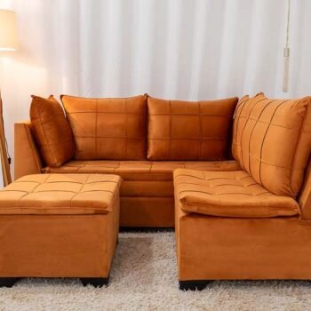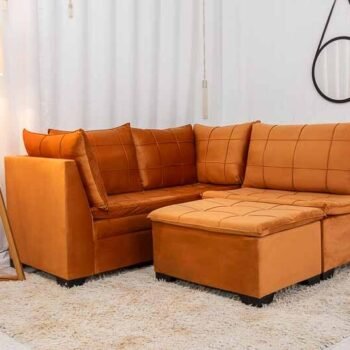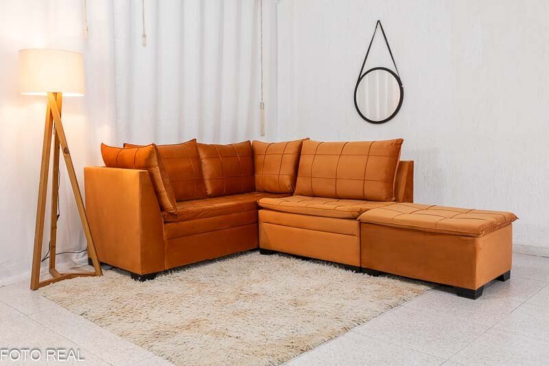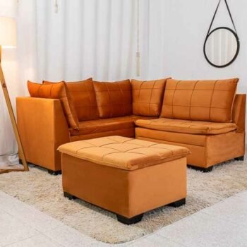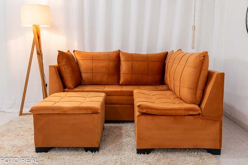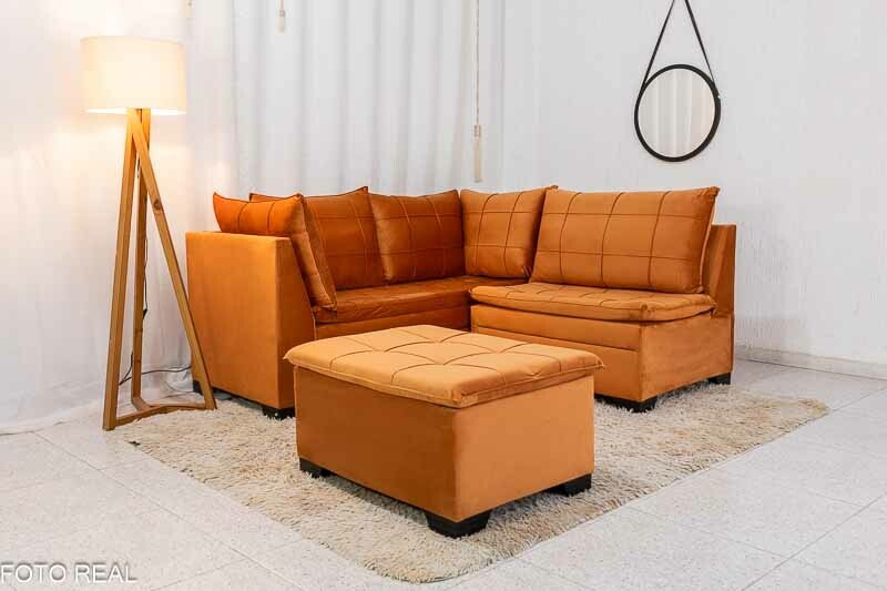 3{%%}Descrição{%%}Sofá Canto 5 lugares com Puff Viena Veludo Terracota A62