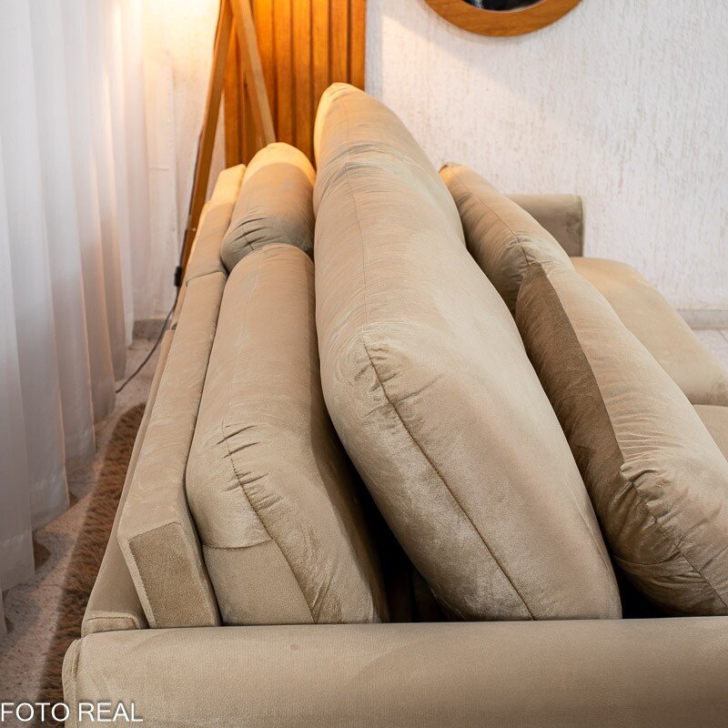 3{%%}Descrição{%%}Sofá Retrátil Amaranto Premium 2.30m Veludo Bege – Sem Caixa