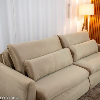 Esse modelo une conforto, praticidade e um visual elegante em um único produto. Com 2,30 metros de largura, ele acomoda bem até 4 pessoas e ainda vira uma cama espaçosa de 2,05×1,45m. ideal para receber visitas ou relaxar assistindo TV. Seu assento retrátil com pillow de 17cm e molas bonnel garante conforto mesmo por longas horas, e o encosto reclinável com almofadas soltas oferece aquele apoio extra para o corpo.