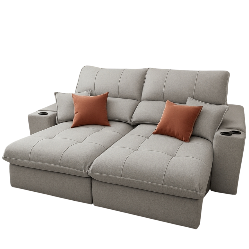 Sofá Retrátil e Reclinável Afrodite Slim 2,90 m Linho Cinza 302 Confort 07 – ZARAT ESTOFADOS