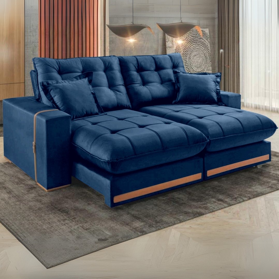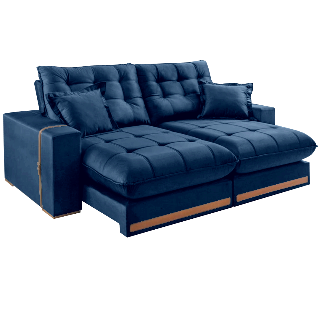 Sofá Retrátil e Reclinável Ártemis 017 2,50 m Veludo Azul – VICAM ESTOFADOS