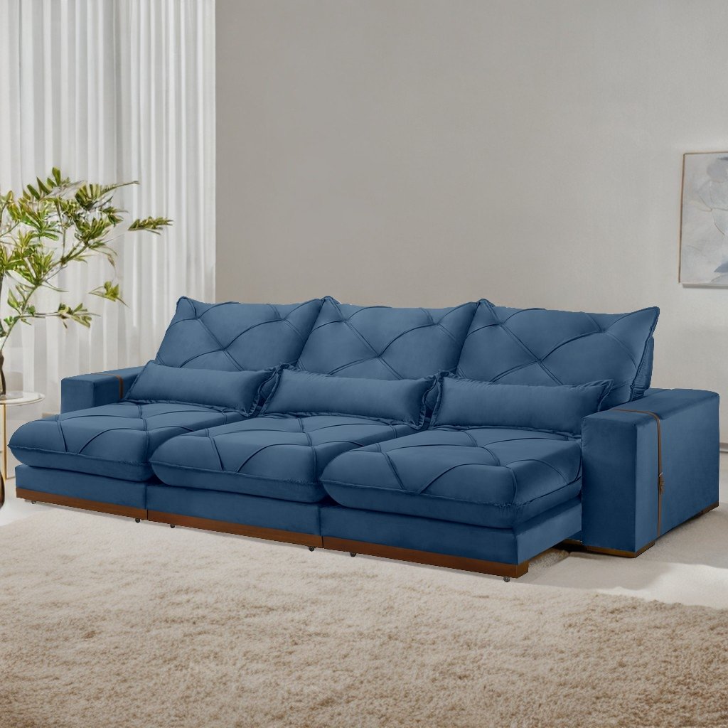 Sofá Retrátil e Reclinável Bahia 3,50 m Veludo Azul – A&D ESTOFADOS