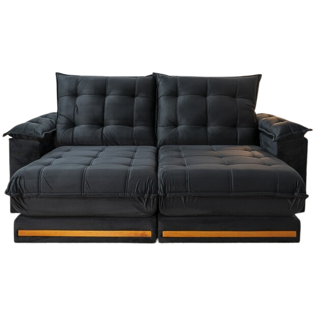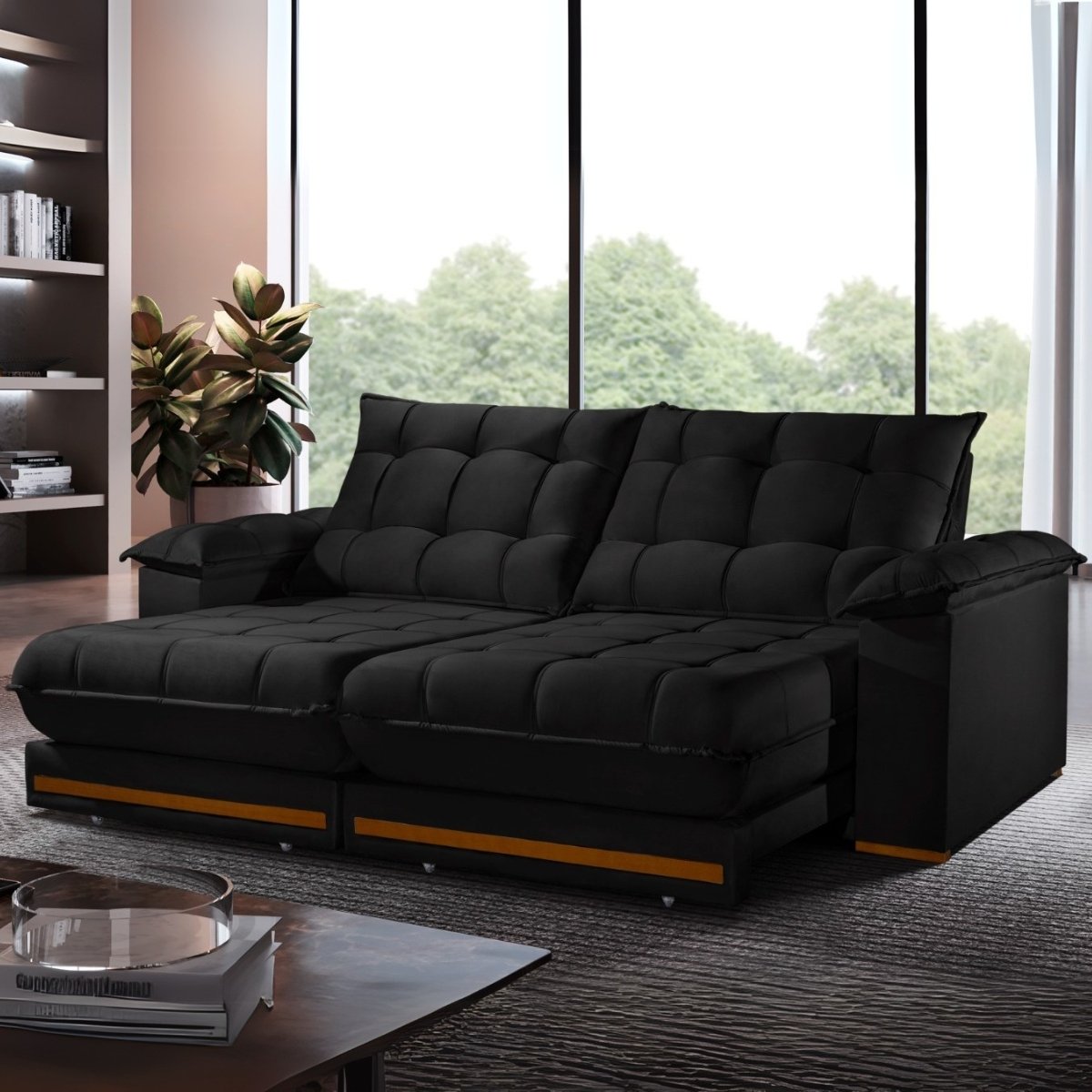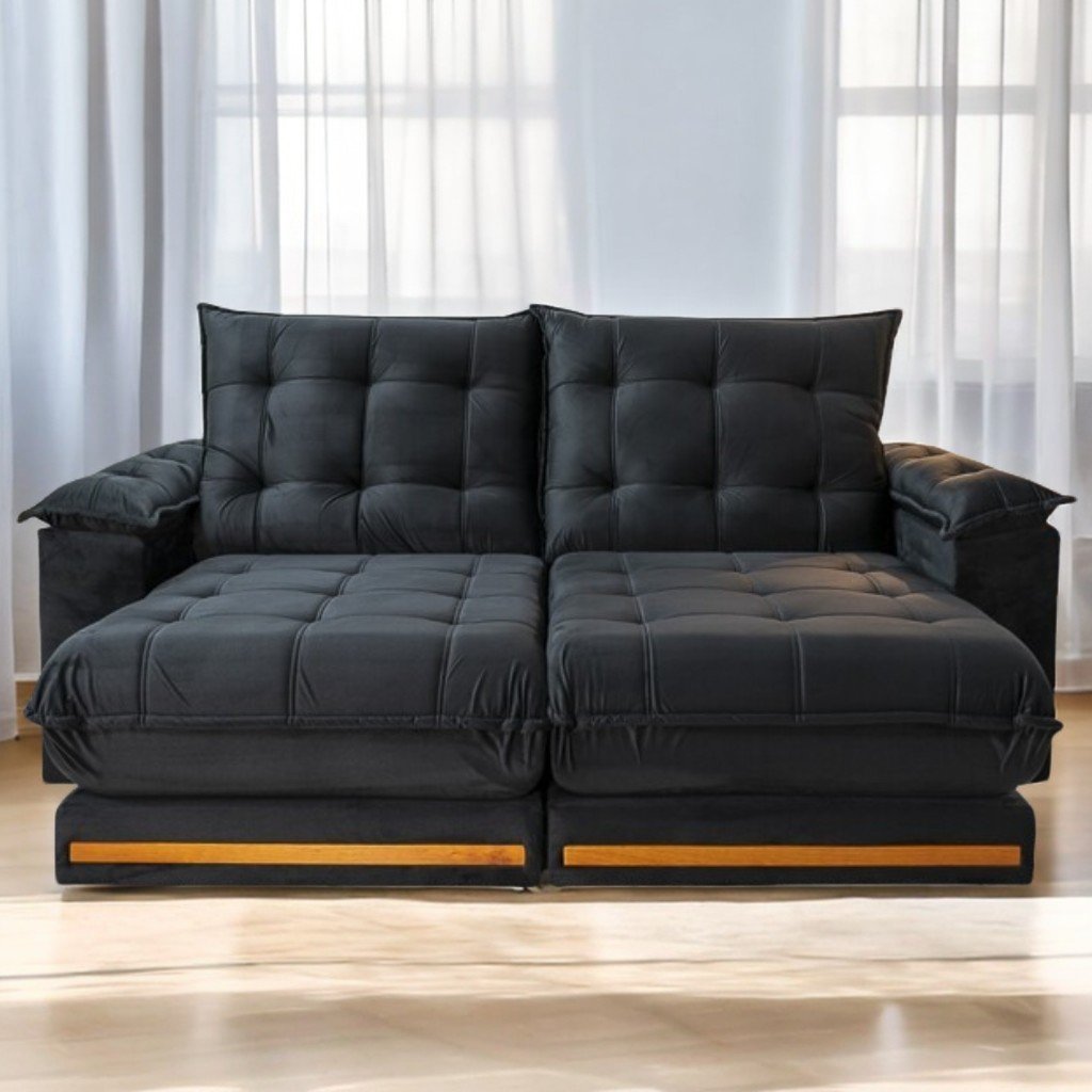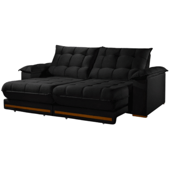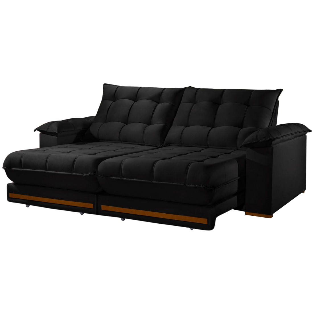 Sofá Retrátil e Reclinável Barcelona 2,50 m Veludo Preto – ESTOFADOS TEIXEIRA