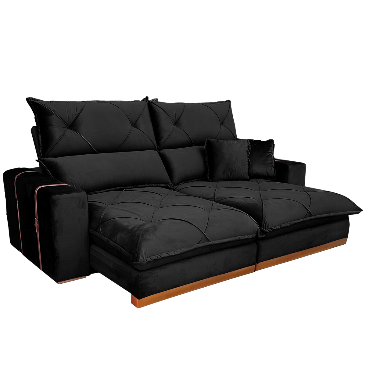 Sofá Retrátil e Reclinável Gran Bello 2,00 m Veludo Preto – QUINE ESTOFADOS